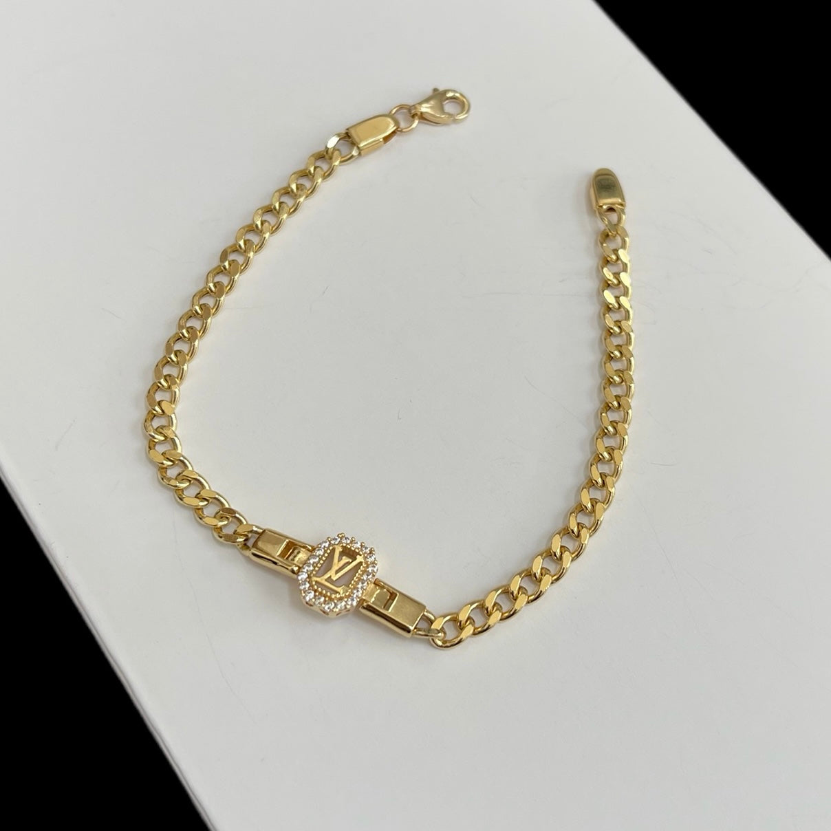 18k LV Bracelet on Cuban Link Chain